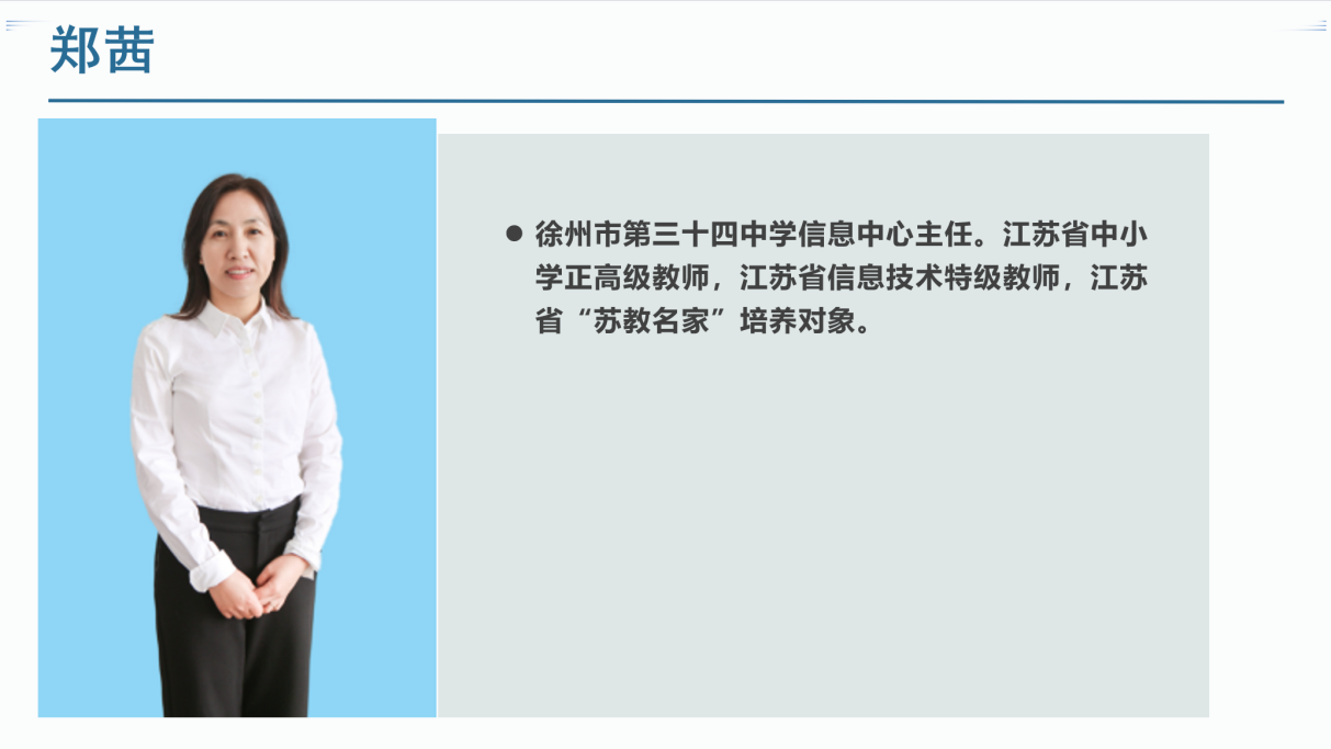 本次活动由南京市浦口区教师发展中心张久娟老师主持,中国教育学会中小学信息技术教育专委会理事长顾小清教授、徐州市第三十四中学信息中心主任郑茜教授等出席,来自全国各地的信息科技教师及教育专家近3000多人齐聚云端,共同围绕"大语言模型与AIGC"主题开展深度教研。主备团队经张久娟老师带头,由金丽琴(高中)、张媛媛(初中)、闫强国(初中)、尹萍(小学),共5位老师组成。